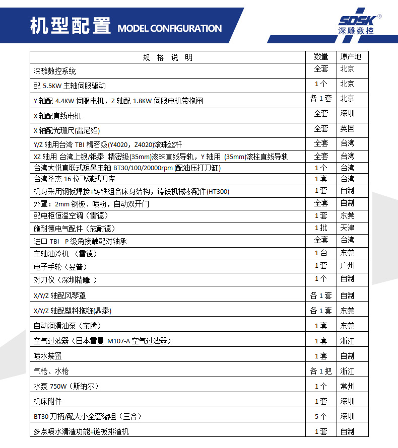 1、SD4500V7-BT40機(jī)型系列是專(zhuān)門(mén)為客戶量身定做的大型型材加工中心; 天車(chē)式結(jié)構(gòu);三軸運(yùn)動(dòng)機(jī)構(gòu)設(shè)計(jì)在橫梁頂部輕巧便捷也方便清理,Y軸機(jī)頭前后移動(dòng),X軸機(jī)頭左右移動(dòng),Z軸主軸上下移動(dòng)。