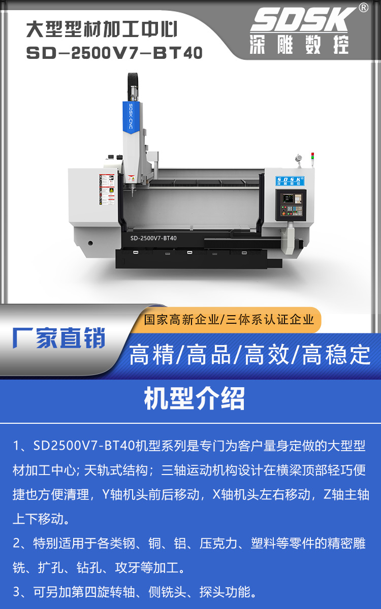 大型型材加工中心SD2500V7-BT40數(shù)控機床參數(shù)配置