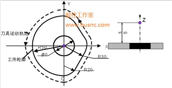 n  對刀點(diǎn)(起刀點(diǎn)) :確定刀具與工件相對位置的點(diǎn),刀具相對于工件運(yùn)動的起點(diǎn),又稱起刀點(diǎn),也就是程序運(yùn)行的起點(diǎn)。